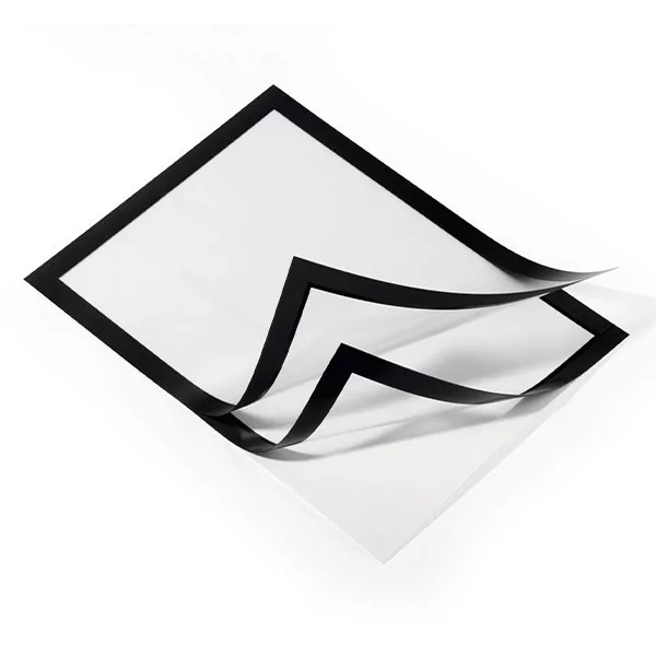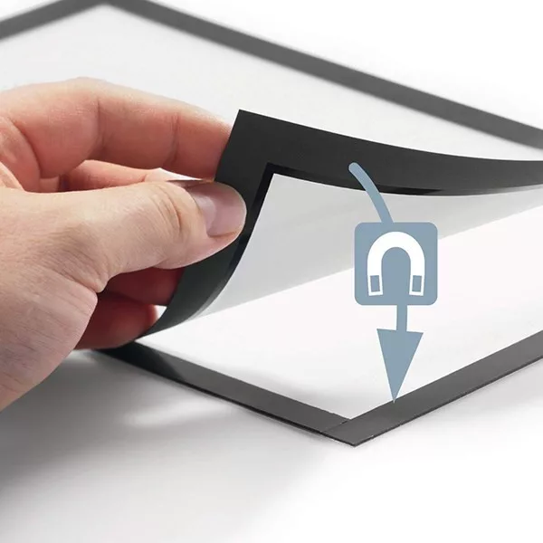 A4 formátumú öntapadó infokeret, iInformációk magas színvonalú és professzionális megjelenítése. A felhajtható mágneses keret gyors dokumentumcserét tesz lehetővé, segédeszközök nélkül egyszerűen felhelyezhető sima, teherbíró felületekre. Pl. üvegről visszaszedhető. A4 formátumú dokumentumokhoz, ideális lehet pl. helyiségek megjelölésére, eligazító információk vagy ajánlatok megjelenítésére. Üveg felületen két oldalról olvasható. A keret mindkét oldalról azonos megjelenésű, Álló és fekvő formátumban is használható. Ingyenesen letölthető, előre elkészített sablonok elérhetőek a www.duraprint.eu oldalon. Külső méret: 236 x 323 mm