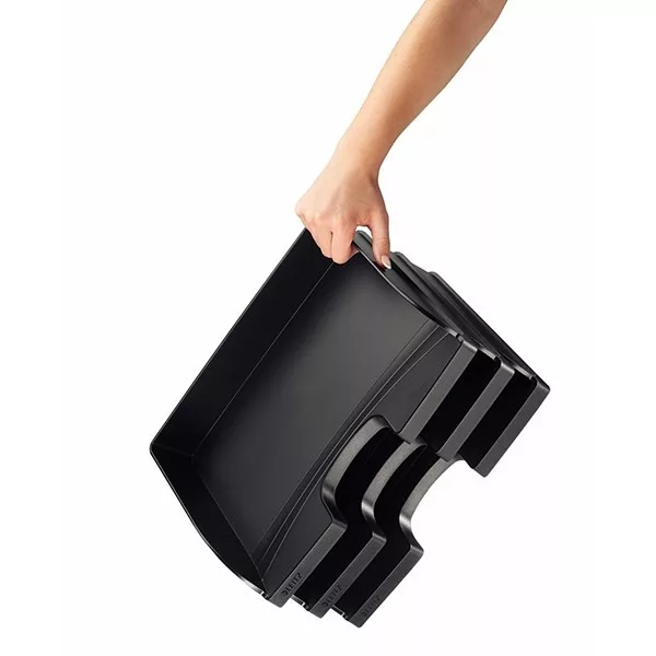Robosztus, oldalt nyitott irattálca. Tervezése és színvilága illik a Leitz Plus termékcsalád többi tagjához. Egymásra helyezhető a Leitz Plus jumbo oldalt nyitott irattálcákkal.