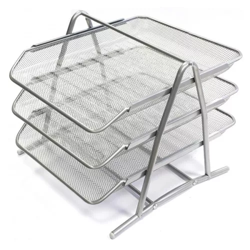 Fémhálós kivitelű háromszintes irattartó tálca, A/4 -es méretű iratok tárolására, ezüst színben