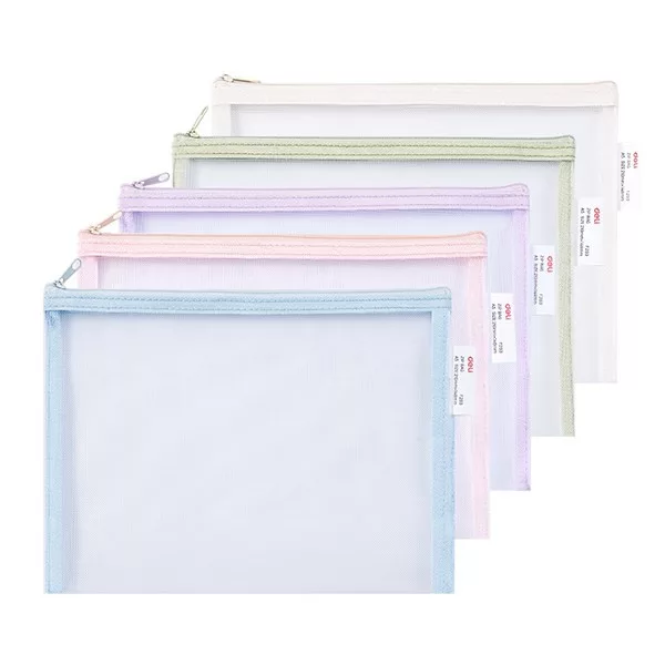Irattasak DELI Colorful A/5 cipzáras szövet éllel vegyes pasztell színekben