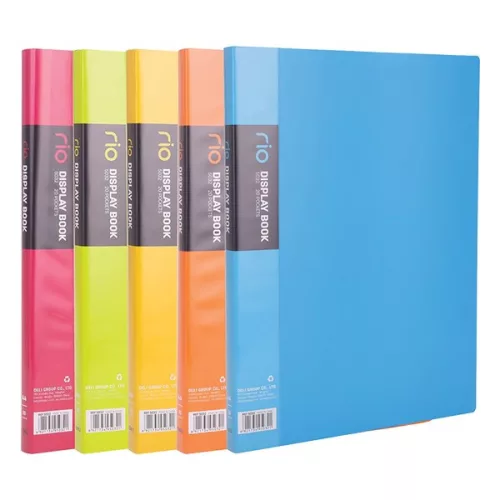 Szórólapok, árlisták, ajánlatok átadására, tárolására. 180°-ban nyitható. Anyaga PP. 20 zsebes változat, RIO vegyes színekben: kék-zöld-vörös-sárga-narancs