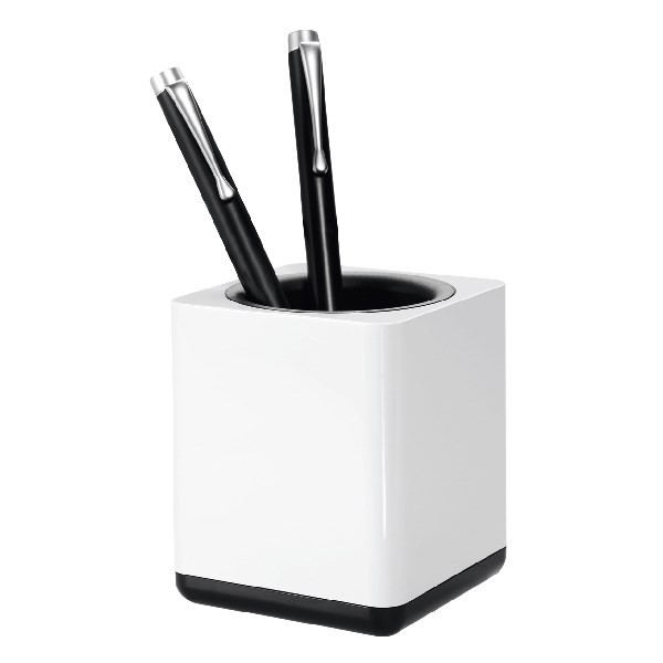 Írószertartó fehér-fekete színben.