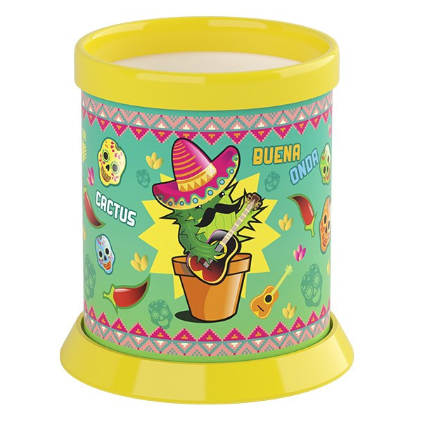 Kaktusz motívummal díszített henger alakú, asztali írószertartó
