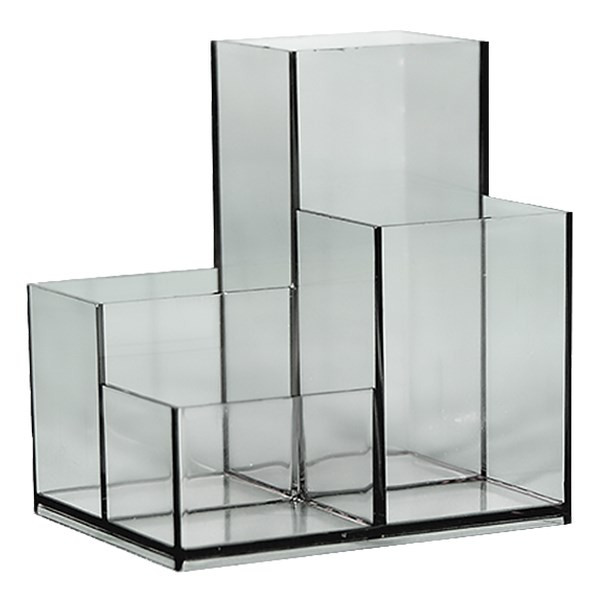 Átlátszó műanyag, szögletes, 4 rekeszes írószertartó.