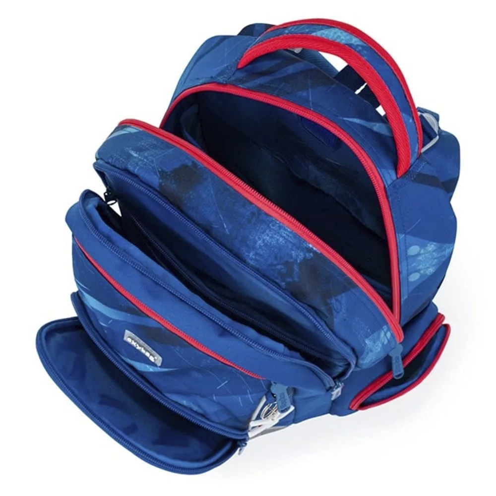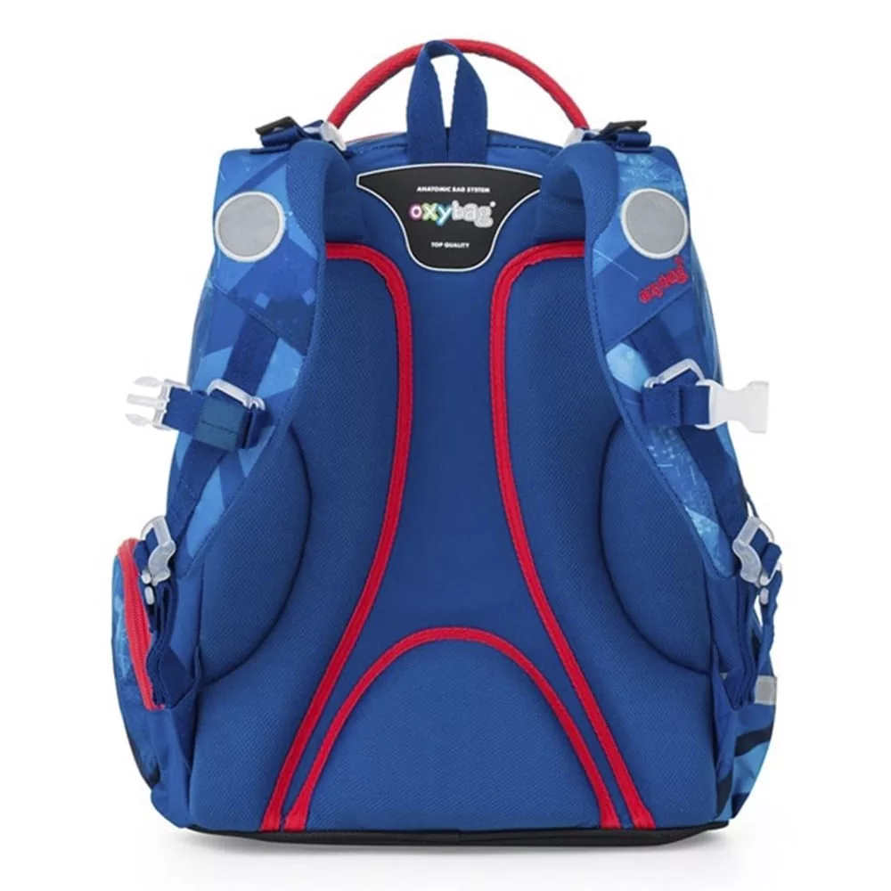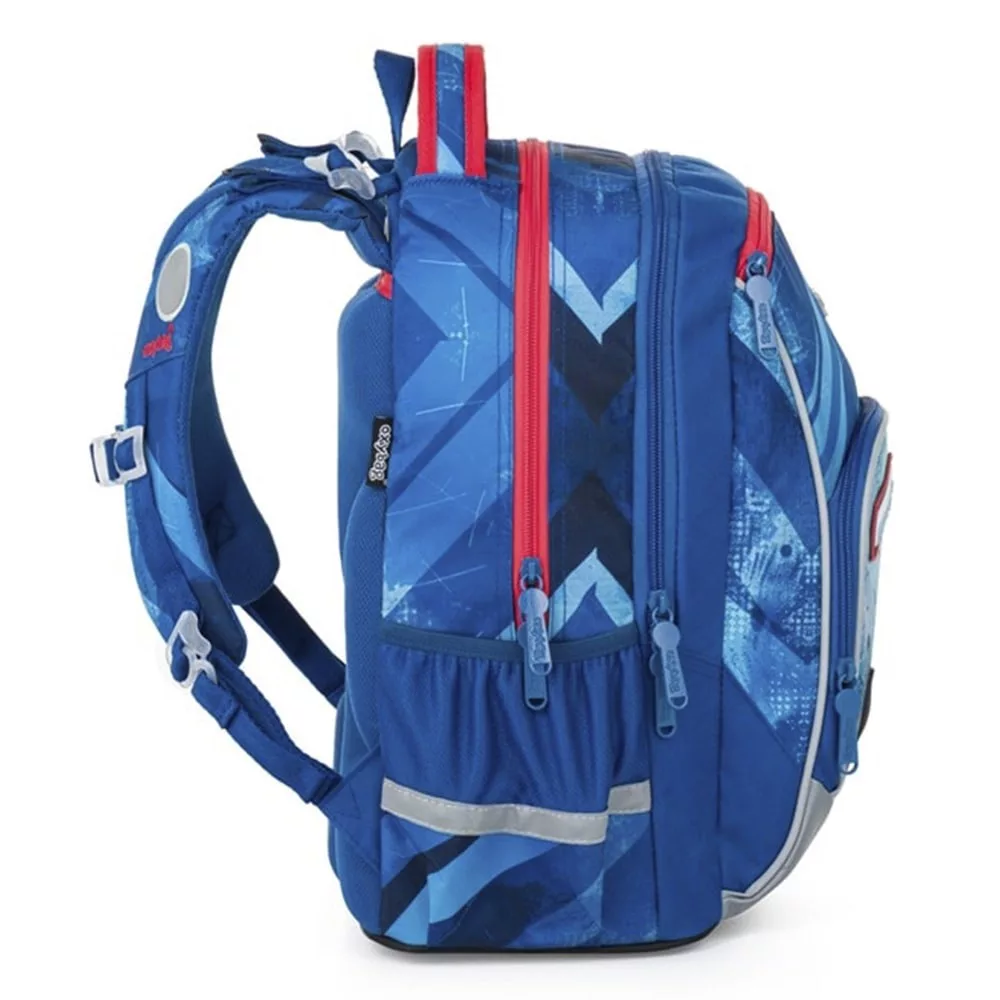 Remek 3 részes szett: OXY GO hátizsák, üres tolltartó és tornazsák. Az OXY GO iskolai hátizsák anatómiailag formázott, légáteresztő hátrésszel és állítható vállpántokkal készült a kényelmes viseletért. A plusz akasztók lehetővé teszik a hosszú pántok rögzítését. A belső zsebek bőséges helyet biztosítanak tankönyveknek, füzeteknek és egyéb felszereléseknek, a masszív, vízálló alj pedig megvédi a tartalmat a szennyeződéstől és a nedvességtől. Oldalt két zseb található (egy cipzáras és egy nyitott), például kulacsnak. Fényvisszaverő elemek növelik a biztonságot. A hátizsák 1–3. osztályos gyermekeknek ideális, 125 cm testmagasságtól. Űrtartalom: 22 l, teherbírás: 8 kg. A szett tartalmaz egy egyszintes, üres tolltartót és egy azonos mintájú tornazsákot is.
