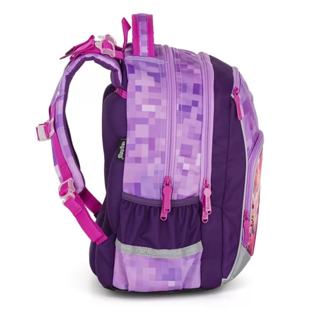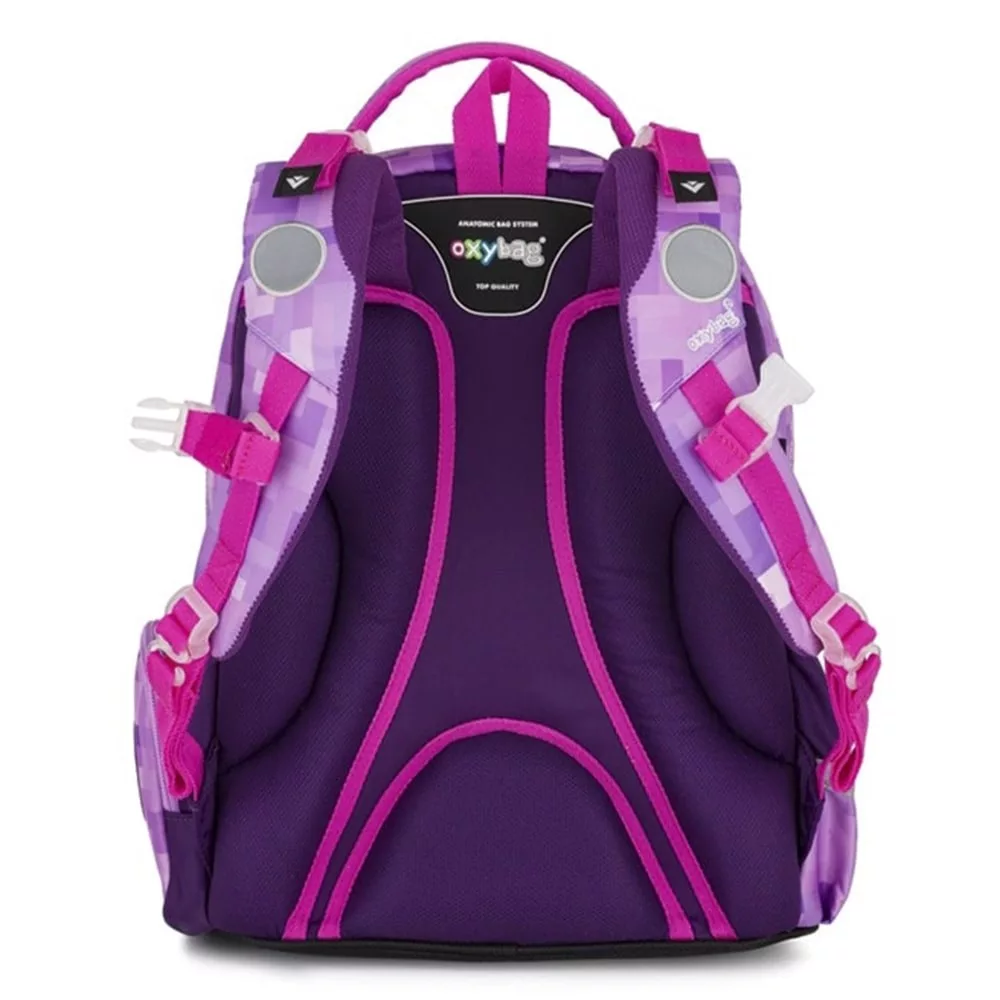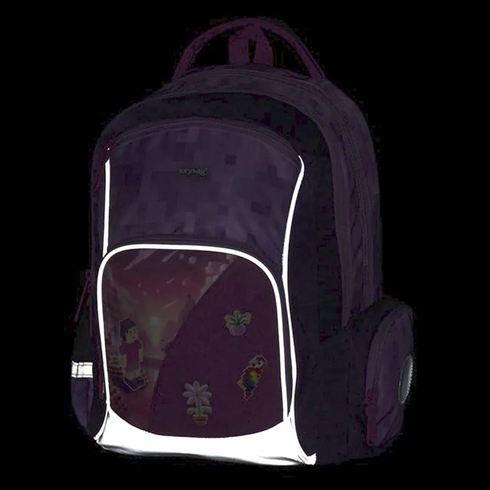 Remek 3 részes szett: OXY GO hátizsák, üres tolltartó és tornazsák. Az OXY GO iskolai hátizsák anatómiailag formázott, légáteresztő hátrésszel és állítható vállpántokkal készült a kényelmes viseletért. A plusz akasztók lehetővé teszik a hosszú pántok rögzítését. A belső zsebek bőséges helyet biztosítanak tankönyveknek, füzeteknek és egyéb felszereléseknek, a masszív, vízálló alj pedig megvédi a tartalmat a szennyeződéstől és a nedvességtől. Oldalt két zseb található (egy cipzáras és egy nyitott), például kulacsnak. Fényvisszaverő elemek növelik a biztonságot. A hátizsák 1–3. osztályos gyermekeknek ideális, 125 cm testmagasságtól. Űrtartalom: 22 l, teherbírás: 8 kg. A szett tartalmaz egy egyszintes, üres tolltartót és egy azonos mintájú tornazsákot is.