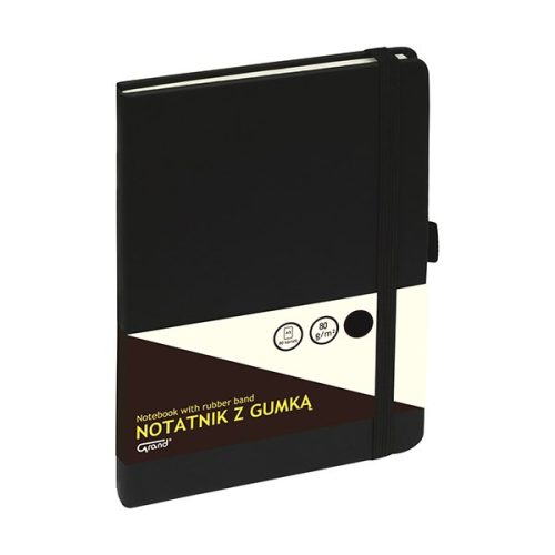 Jegyzetfüzet kockás GRAND A/5 80 lapos gumis puhafedeles fekete