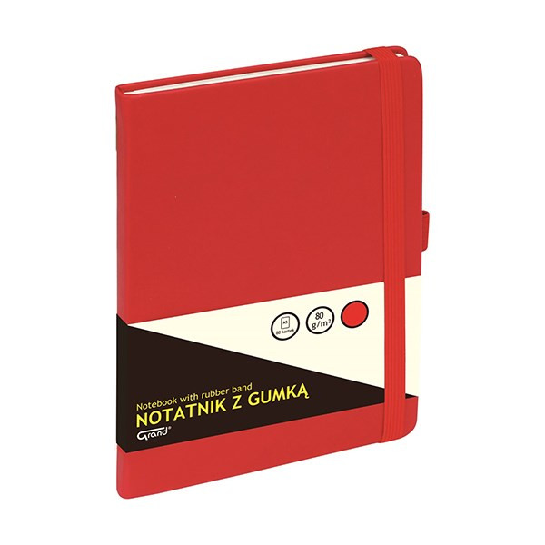Jegyzetfüzet kockás GRAND A/5 80 lapos gumis puhafedeles piros