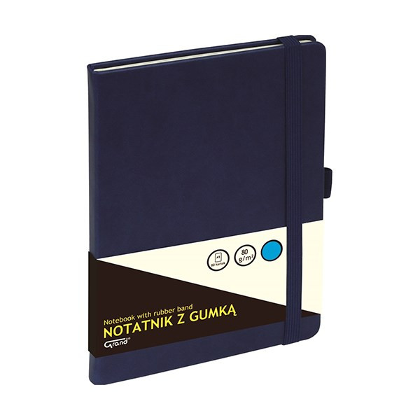 Jegyzetfüzet kockás GRAND A/5 80 lapos gumis puhafedeles sötétkék
