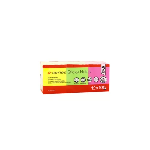 Jegyzettömb öntapadó 50x40mm 12x100lap  A-series brilliant mix 4xsárga, 4xpink, 4xzöld