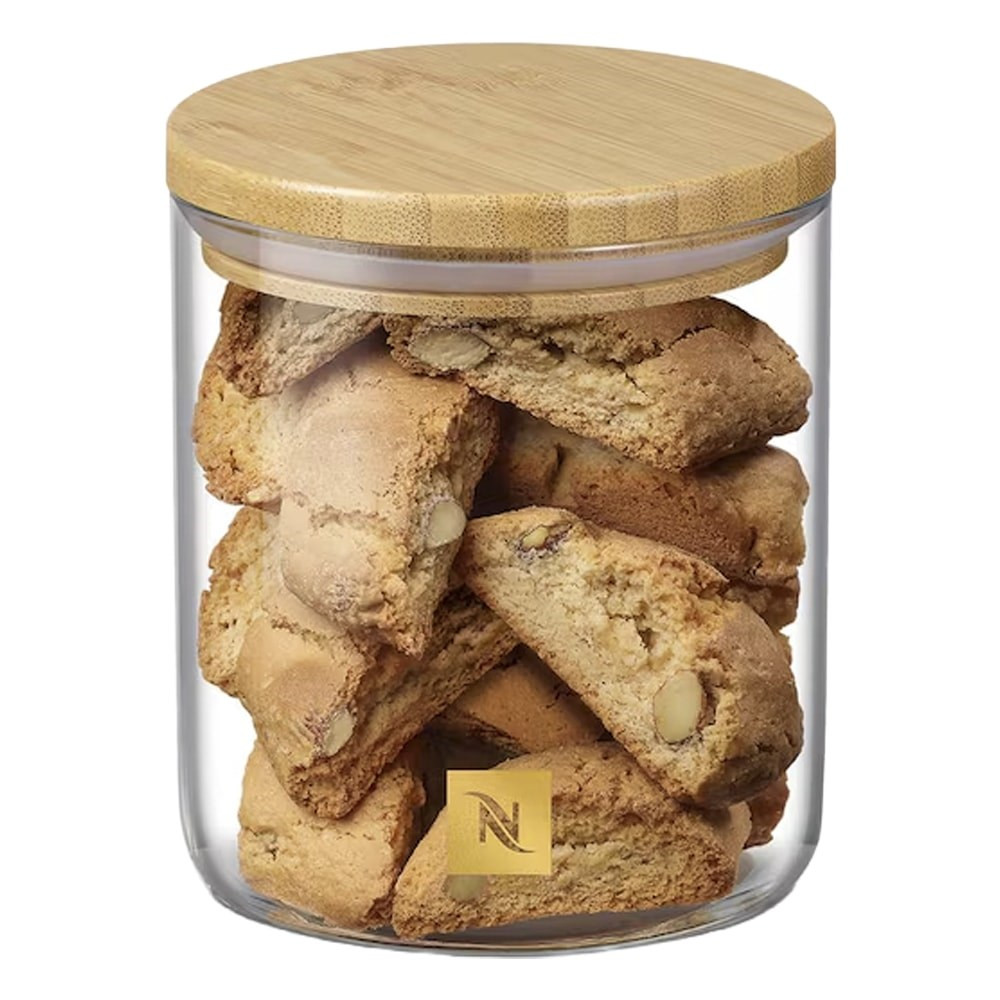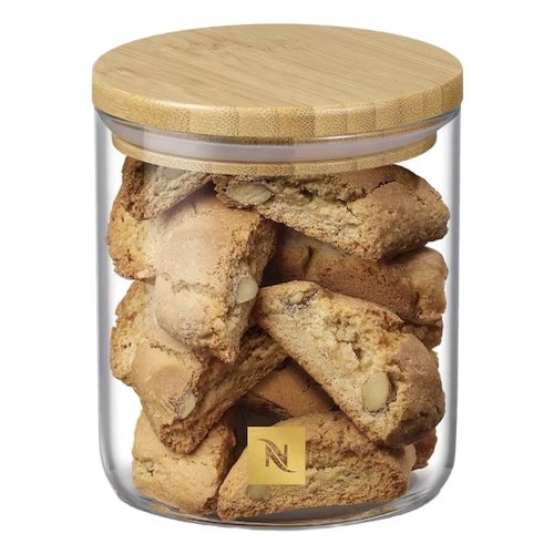 Üveg kapszulatartó bambusz fedővel. Kapacitás: 19 Original kapszula vagy 10 Vertuo kapszula (kapszulák nélkül árusítva). Tökéletes Nespresso kapszulák vagy édességek tárolására. Elegáns és letisztult megjelenésével friss kiegészítője minden konyhának.