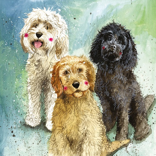 Képeslap Alex Clark borítékkal, 14x14 cm, 3 kutya