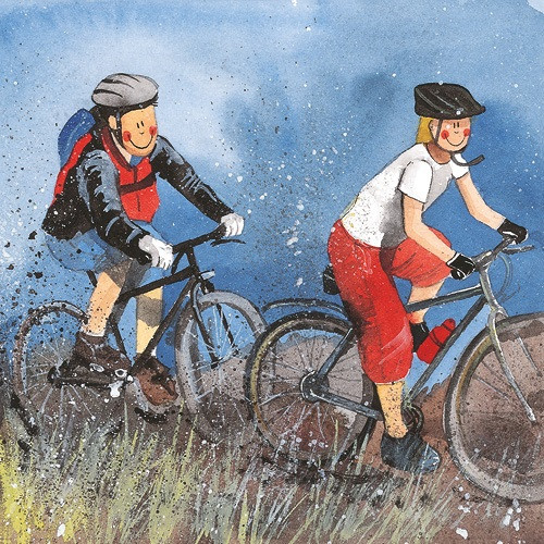 Képeslap Alex Clark borítékkal, 14x14 cm, Biciklis túrázók