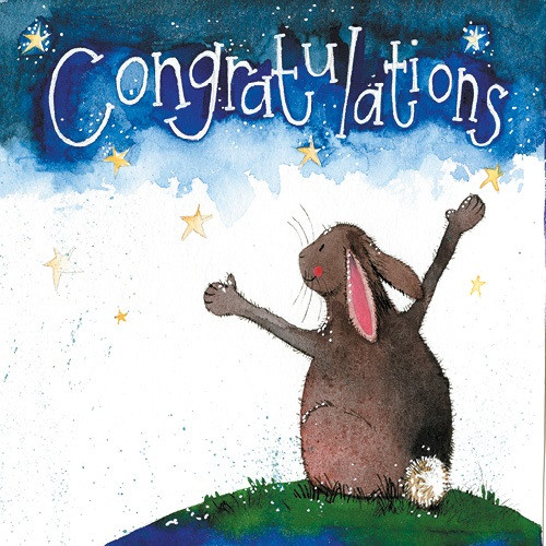 Képeslap Alex Clark borítékkal, 14x14 cm, nyuszi Congratulations