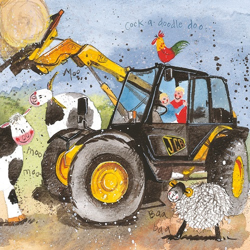 Képeslap Alex Clark borítékkal, 14x14 cm, Traktoros móka
