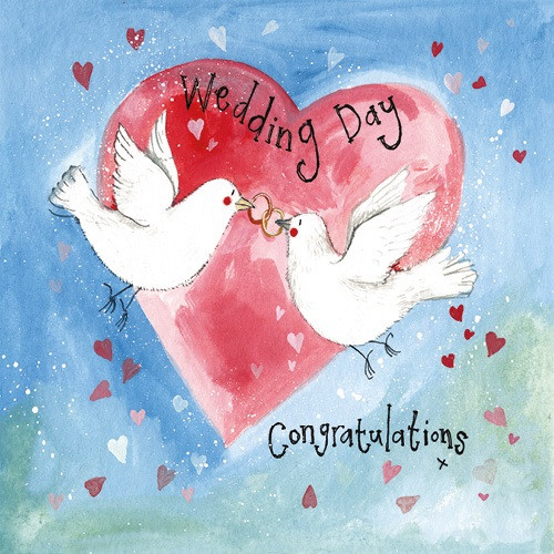 Képeslap Alex Clark borítékkal, 14x14 cm, galambok szívvel