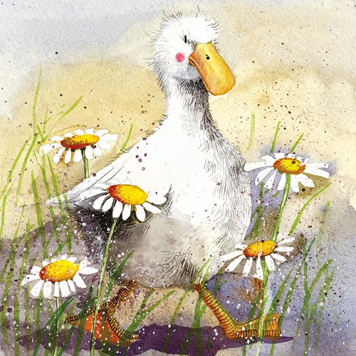 Képeslap Alex Clark borítékkal, 14x14 cm, kacsa margarétával