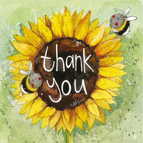 Képeslap Alex Clark borítékkal, 14x14 cm, napraforgó Thank you