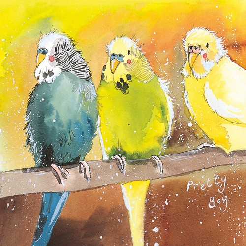 Képeslap Alex Clark borítékkal, 14x14 cm, papagájok