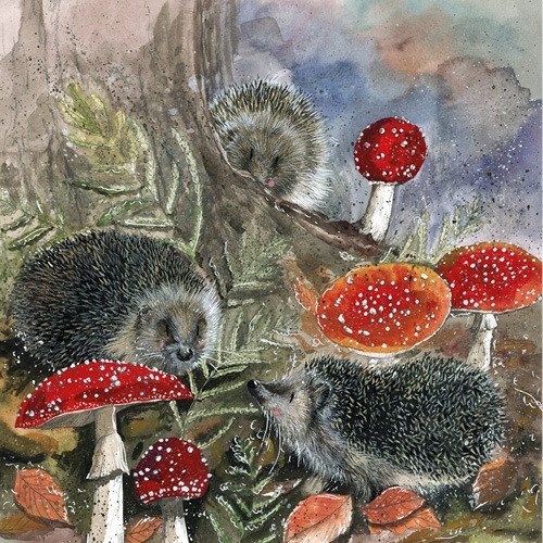 Képeslap Alex Clark borítékkal, 14x14 cm, sünik gombával