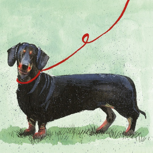 Képeslap Alex Clark borítékkal, 14x14 cm, tacskó