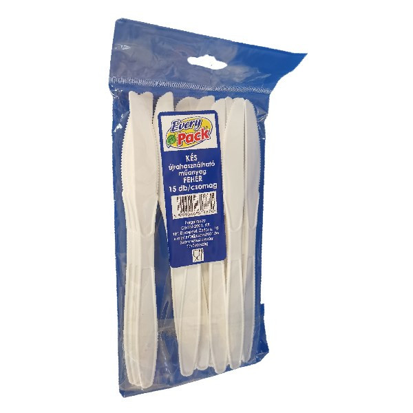 Kés újrahasználható PS műanyag fehér 15 darabos