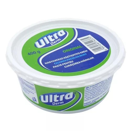 Az Ultra Derm egy nagyhatású, különböző felületaktív anyagokat, szennyeltávolítókat, bőrvédő és egyéb adalékanyagokat tartalmazó kéztisztító krém. Az olyan szennyeződéseket is hatékonyan távolítja el, mint a kéz redőibe, pórusaiba bekerülő olajos, zsíros fémpor, rozsda, vagy grafit.