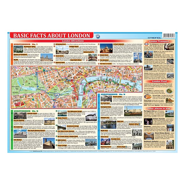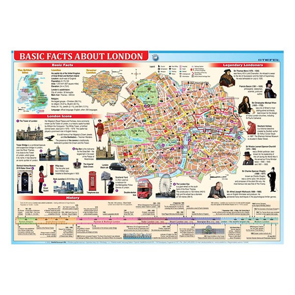 Az angol nyelv tanításában elengedhetetlen az angol nyelvű országok, városok alapismerete. Az iróasztali alátétünk áttekintést ad London történetéről, látványosságairól, gazdaságáról, bemutatja a tömegközlekedést és az ikonikus angol ételeket. Nagy segítség az érettségire és nyelvvizsgára készülők számára! A kemény fóliával bevont alátétek azonkívül, hogy esztétikusak és valódi térképként vagy oktatási segédletként használhatók, egy sor további előnnyel bírnak: védi az asztalt a karcolástól, egyenletes írásfelületet biztosítanak és vízállóak.