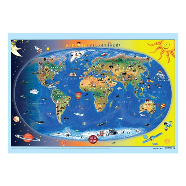 Hazánk földrajzának megismerése mellett elengedhetetlen tágabb környezetünk megismerése is. Ehhez nyújt segítséget az íróasztali alátét. A gyerektérkép bohókás piktogramjai játékosan segítik átadni az ismereteket.