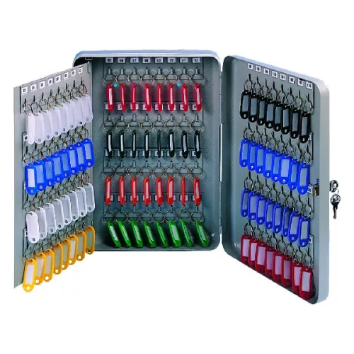 Fém kulcsszekrény portaszolgálatnál, recepcióknál, biztonsági pultoknál, iskolai szekrényeknél történő használatra. A kulcsokhoz különféle színű, megkülönböztető kulcstartókat is tartalmaz.