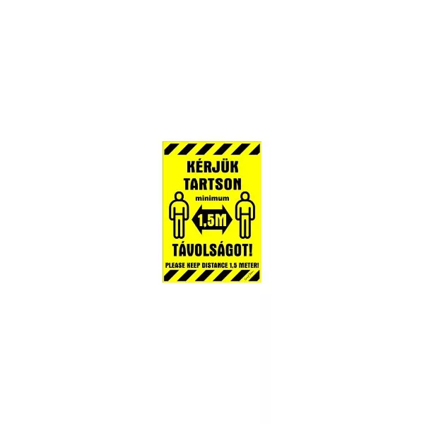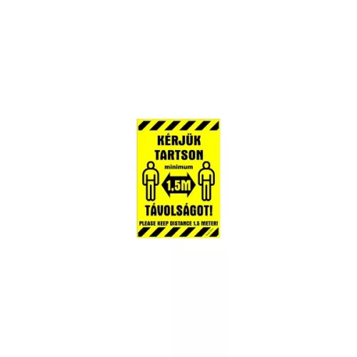 Matrica Kérjük tartson minimum 1,5 m távolságot sárga 16,5 x 11,5 cm "K"
