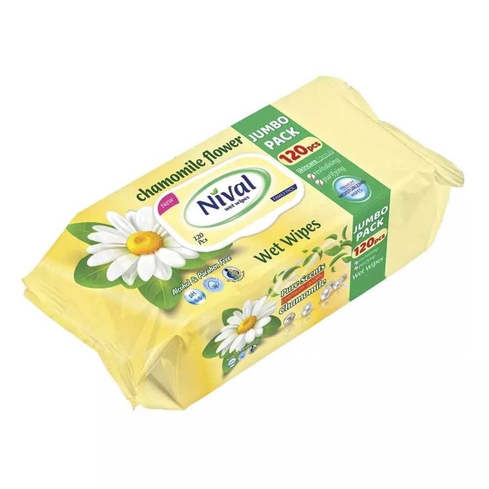 Nedves törlőkendő NIVAL kamillás 120 darabos