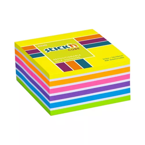 Öntapadós jegyzettömb STICK'N 76x76mm neon sárga mix 400 lap