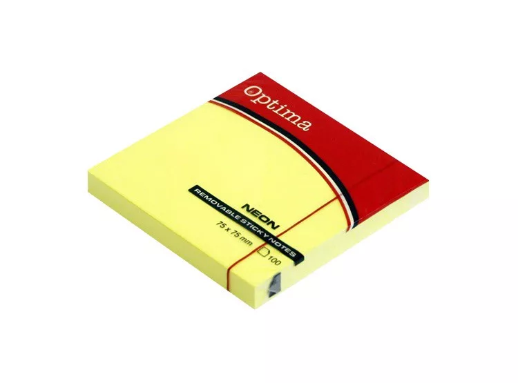 Öntapadós jegyzettömb OPTIMA 75x75mm neon sárga 100 lap