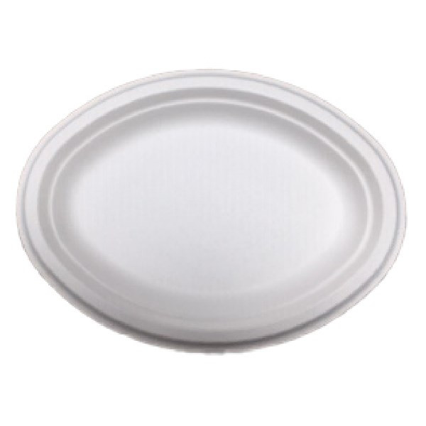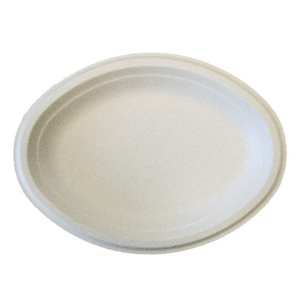 Papírtányér eldobható ovális KOMP cukornád lebomló 25,4x19,05 cm natúr 125 darabos