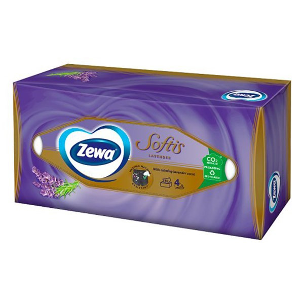 Papírzsebkendő ZEWA Softis 4 rétegű 80 darabos dobozos Levendula