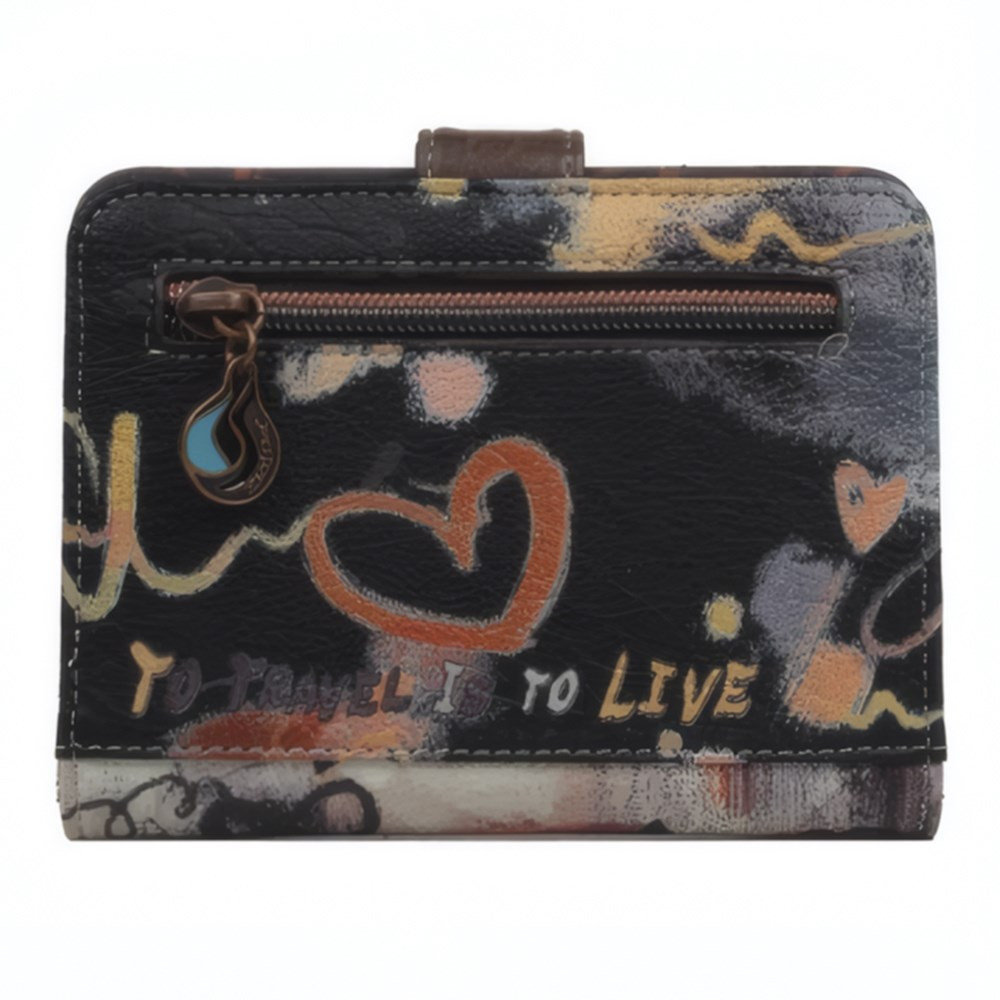 Az Art Gallery kollekció pénztárcája kicsi, de kihagyhatatlan. A játékos feliratos és festői részletekkel díszített minta egy mini vászonként működik, amely minden használatkor elvarázsol.