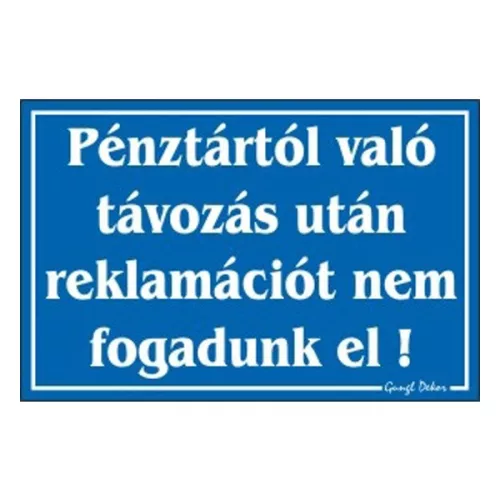 Pénztártól való távozás után reklamációt nem fogadunk el.