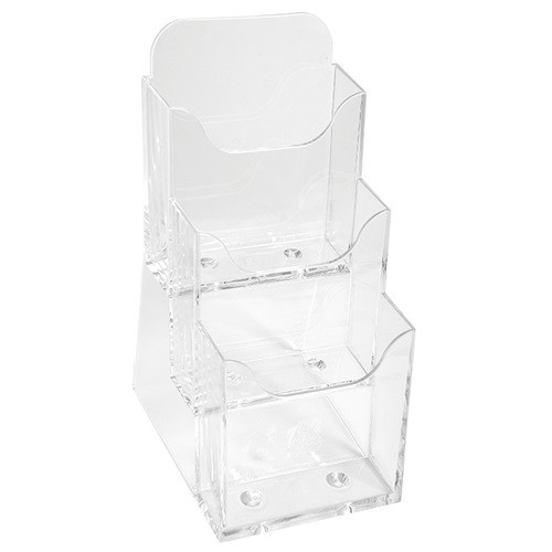 Prospektustartó ExacomptA/Multiform 11.2x11.5x21.8 cm asztali 3 rekeszes áttetsző