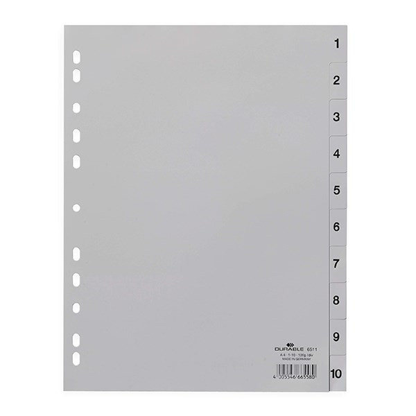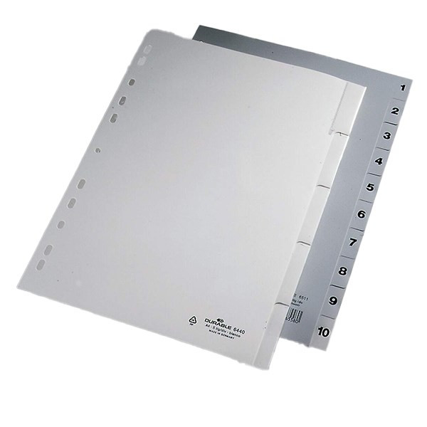Regiszter DURABLE műanyag nyomtatott A/4 1-10 részes szürke