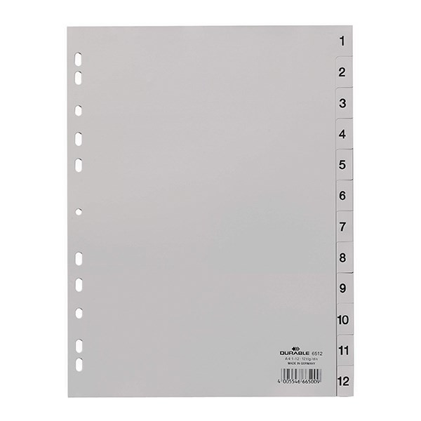 Regiszter DURABLE műanyag nyomtatott A/4 1-12 részes szürke