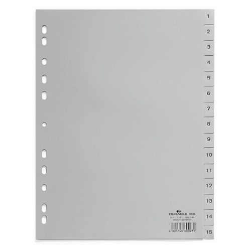 Regiszter DURABLE műanyag nyomtatott A/4 1-15 részes szürke