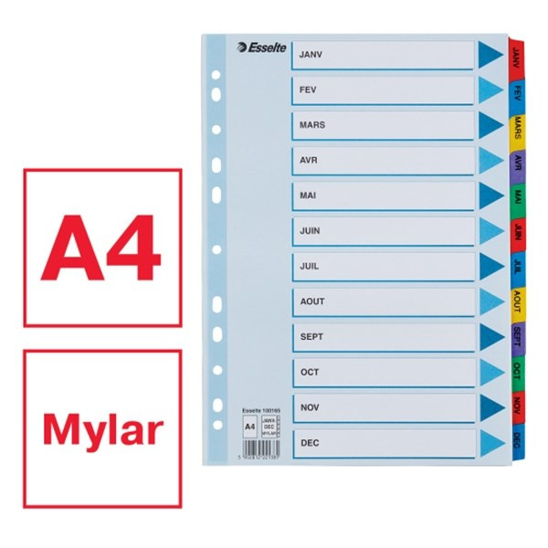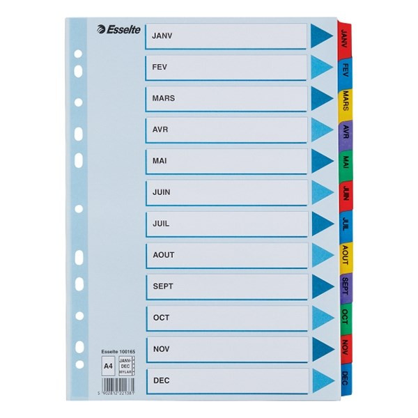Regiszter ESSELTE Mylar A/4 laminált karton Jan-Dec