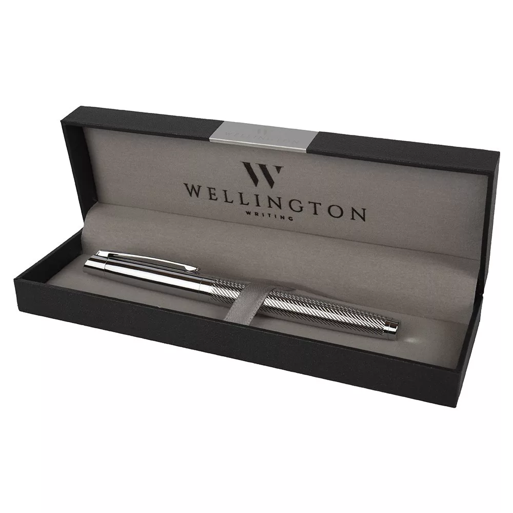 Pérmium minőségű Wellington rollertoll ezüst színben, díszdobozban.