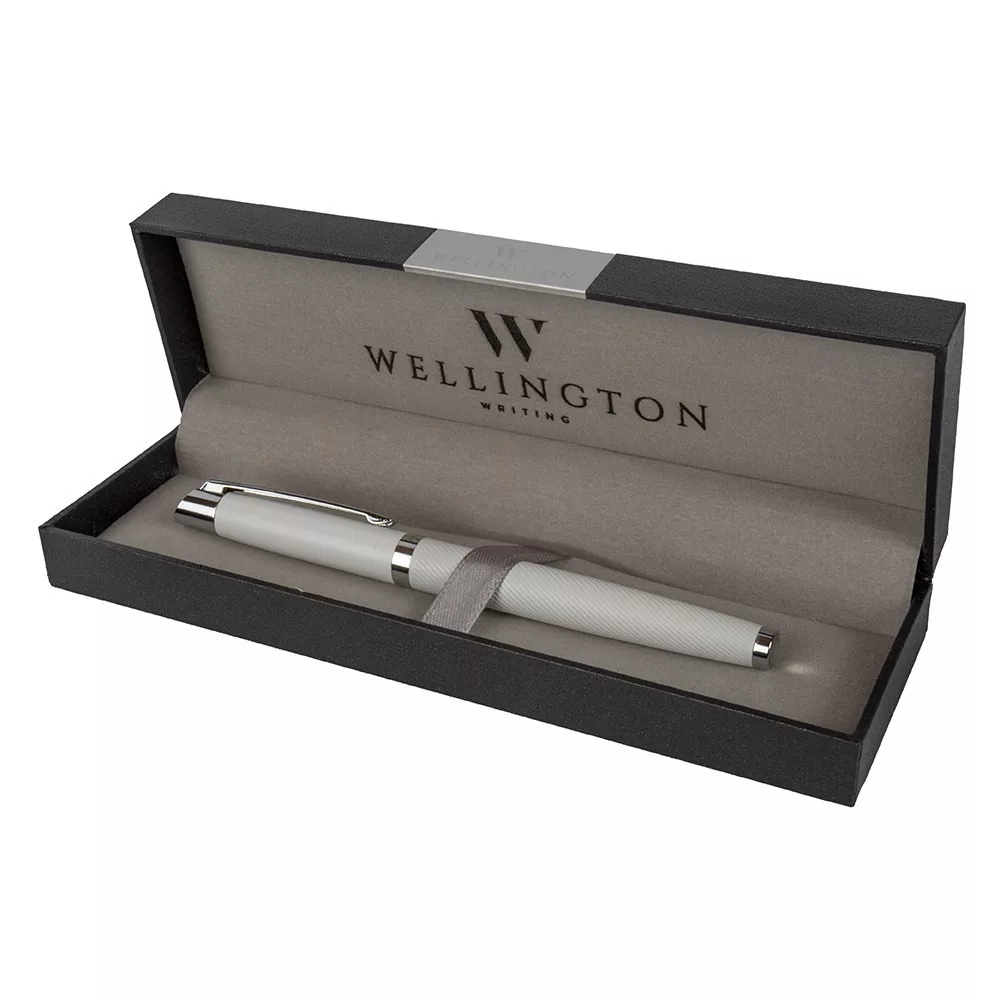 Pérmium minőségű Wellington rollertoll fehér színben, díszdobozban.