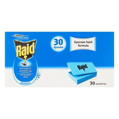 Rovarírtó szúnyogirtó RAID utántöltő lap elektromos készülékhez 30 darabos