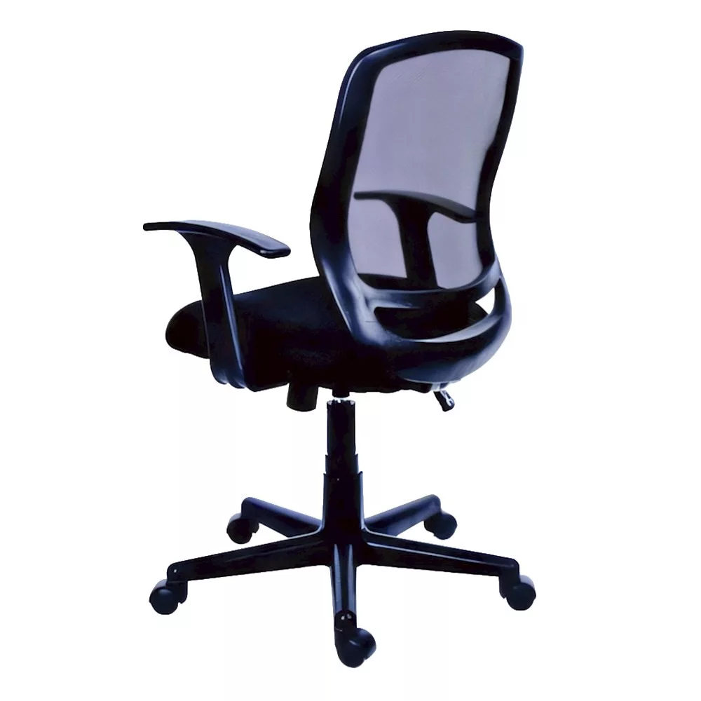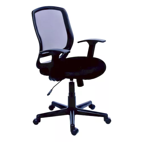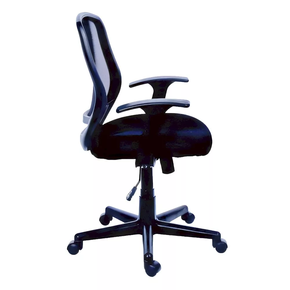 Irodai forgószék párnázott ülőfelülettel. Gázliftes magasságállítás. Rögzíthető hintamechanika. Rögzített, hálós háttámla. Karfa van hozzá.