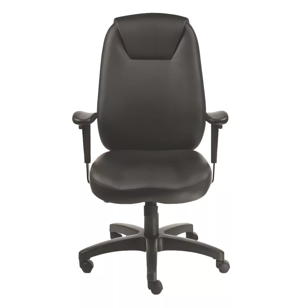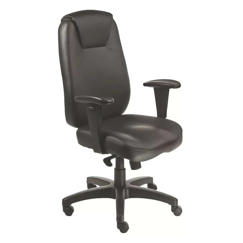 Párnázott főnöki fotel. Extra komfortos szivacsozás. Ergonomikus támlakialakítás. Kényelmes fejtámasz. Gázliftes magasságállítás. Több ponton rögzíthető szinkronmechanika. Állítható karfa.