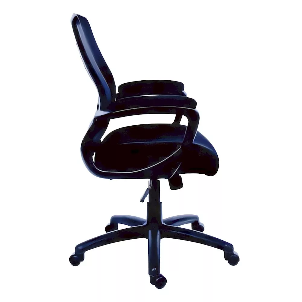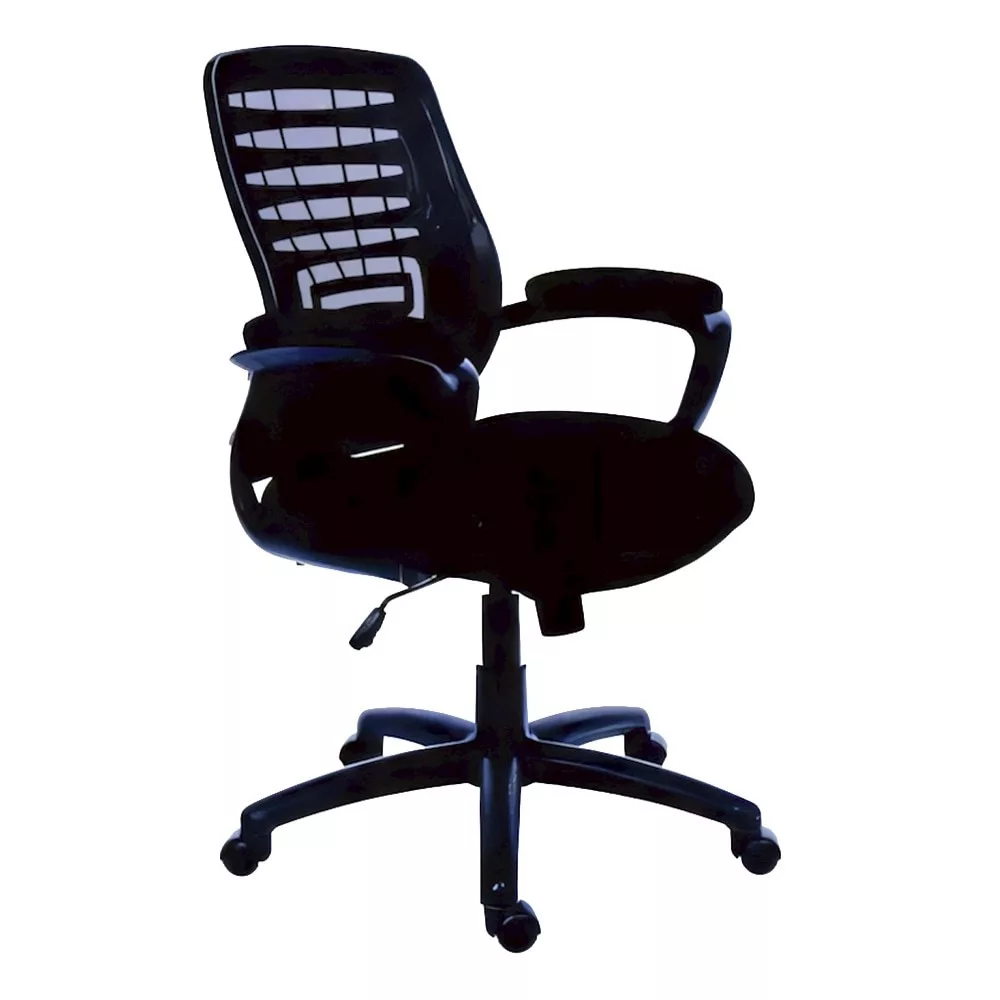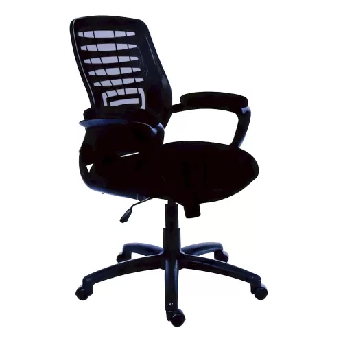 Irodai forgószék párnázott ülőfelülettel. Gázliftes magasságállítás. Rögzíthető hintamechanika. Rögzített, hálós háttámla. Párnázott karfa.