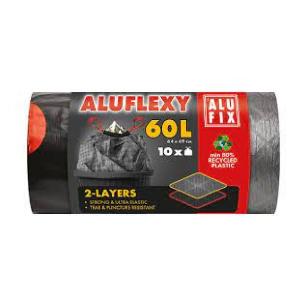 Szemeteszsák ALUFIX 60L 33 mikronos aluflexy fekete 10 darabos